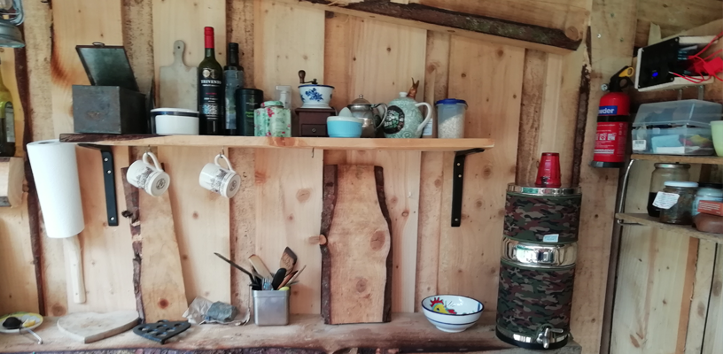 Off-grid: There's all you need here in the woods - but it's an off-grid experience. We love our home-build cook-house and dining area, bathroom and workshop - have a look at the photos above or on our Instagram or Facebook pages to see more. All the building has been done with roundwood or timber (mostly sitka spruce) felled and milled on site.
